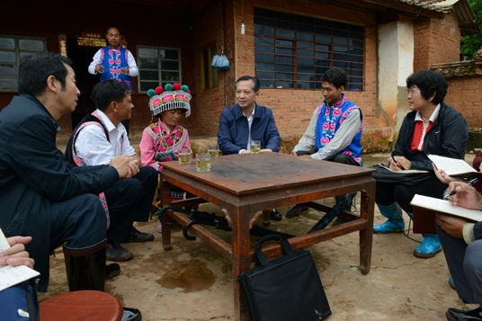 7日至8日,省委常委、省紀(jì)委書記張碩輔率省紀(jì)委工作組到掛鉤扶貧點(diǎn)楚雄市子午鎮(zhèn)挖銅村住村調(diào)研扶貧攻堅(jiān)工作,實(shí)地走訪掛鉤聯(lián)系戶,與當(dāng)?shù)馗刹咳罕娮劷涣鳎犎〕凼小⒆游珂?zhèn)和省投資控股集團(tuán)公司扶貧工作情況匯報(bào),并就扎實(shí)做好精準(zhǔn)扶貧提出要求。