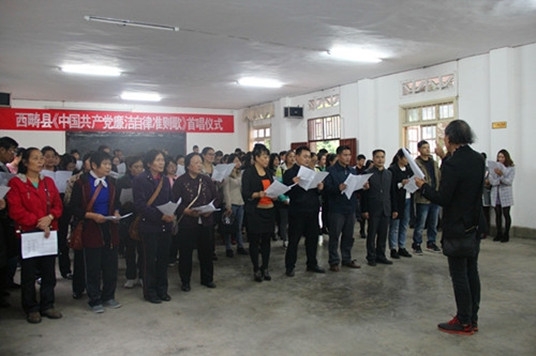 近日,文山州西疇縣舉行了“唱準則、學條例、嚴紀律”宣傳活動暨“中國共產黨廉潔自律準則歌首唱儀式”。