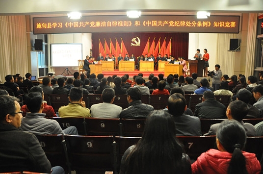 為深入學(xué)習(xí)貫徹《中國共產(chǎn)黨廉潔自律準(zhǔn)則》和《中國共產(chǎn)黨紀(jì)律處分條例》,施甸縣舉辦了學(xué)習(xí)《準(zhǔn)則》和《條例》知識(shí)競賽活動(dòng),以拋磚引玉的方式全面掀起全縣學(xué)習(xí)貫徹黨內(nèi)法規(guī)的熱潮,通過加大宣傳教育促使各級(jí)黨員干部把黨內(nèi)法規(guī)內(nèi)化于心、外化于行,堅(jiān)持把紀(jì)律挺在前面,做學(xué)規(guī)矩、懂規(guī)矩、守紀(jì)律的好黨員、好干部。