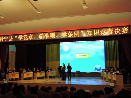 12月3日晚,晉寧縣 “學(xué)黨章、學(xué)準(zhǔn)則、學(xué)條例”知識(shí)競(jìng)賽決賽在晉寧會(huì)堂舉行。此次知識(shí)競(jìng)賽活動(dòng)分為預(yù)賽和決賽兩個(gè)階段。全縣45家單位通過抽簽方式分為8個(gè)小組在12月1日—3日進(jìn)行了預(yù)賽,每組的第一名進(jìn)入決賽。經(jīng)過兩輪個(gè)人必答題、兩輪小組必答題、搶答題、風(fēng)險(xiǎn)題共六輪競(jìng)賽的角逐,縣紀(jì)委代表隊(duì)和雙河鄉(xiāng)代表隊(duì)在決賽中拔得頭籌。縣政府辦、縣投促局、縣委組織部、縣司法局、上蒜鎮(zhèn)、縣衛(wèi)計(jì)局等6家單位分列二、三名。縣工業(yè)園區(qū)管委會(huì)、縣國(guó)土局、夕陽鄉(xiāng)、縣科信局等12家單位獲得優(yōu)秀組織獎(jiǎng)。雙河鄉(xiāng)代表隊(duì)的2號(hào)選手楊光路、縣紀(jì)委代表隊(duì)1號(hào)選手郝光珍以其在賽場(chǎng)上的優(yōu)異表現(xiàn)榮獲優(yōu)秀選手稱號(hào)。