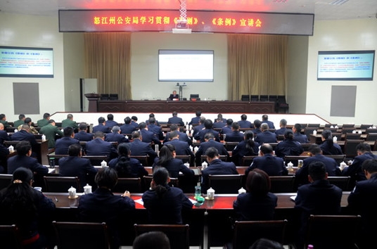 宣講報告會圍繞黨的十八大以來,全面從嚴治黨的實踐成果和反腐敗斗爭面臨的形勢任務,從《準則》和《條例》出臺的背景、意義、特點,學習理解的關鍵點,以及全面把握《準則》和《條例》的主要內容、全面推進《準則》和《條例》的貫徹落實等方面,作了系統全面的講述和解讀,宣講報告內容豐富,層次分明,說理透徹,要求明確,既有理論深度,又有生動的實例,具有很強的指導性和針對性,對聆聽報告會的全體民警深入學習領會《準則》和《條例》的精神實質,嚴格遵守、執行《準則》和《條例》具有重要的指導作用。