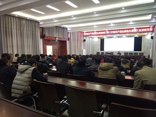 12月28日,馬關縣舉辦《準則》和《條例》宣講報告會,州委宣講團到會開展專題宣講。縣人大、縣政協各工委室主任,縣紀委班子成員、各紀工委書記、監察局副局長、各室主任,縣直各部門領導,各鄉(鎮、場)黨委副書記、紀委書記參加報告會。