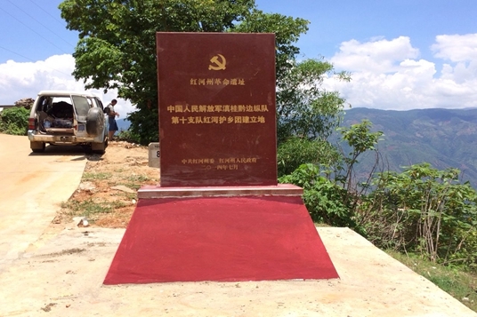 在紅河縣迤薩鎮(zhèn)昆南村建立的中國人民解放軍滇桂黔邊縱隊(duì)第十支隊(duì)紅河護(hù)鄉(xiāng)團(tuán)建立地