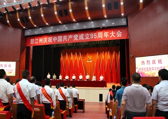 6月27日下午,怒江州隆重召開慶祝中國共產(chǎn)黨成立95周年大會(huì),重溫黨的光輝歷程,謳歌黨的豐功偉績,繼承黨的優(yōu)良傳統(tǒng),表彰全州各條戰(zhàn)線涌現(xiàn)出的優(yōu)秀共產(chǎn)黨員、優(yōu)秀黨務(wù)工作者、優(yōu)秀基層黨組織書記和先進(jìn)基層黨組織,進(jìn)一步動(dòng)員全州各級(jí)黨組織和廣大黨員振奮精神、迎難而上、勇于擔(dān)當(dāng)、務(wù)實(shí)苦干,為全面實(shí)現(xiàn)脫貧攻堅(jiān)、與全省全國同步全面建成小康社會(huì)而努力奮斗。