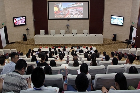 在州委、州政府辦公大樓六樓視頻會議室,州黨政領導及州委辦、政府辦干部職工全程集中觀看了大會直播實況。