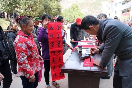 春節前,該縣在三臺鄉隆重舉行2016年度文化衛生科技“三下鄉”集中示范活動,由縣紀委和縣文聯組織的寫春聯隊伍,被前來趕集的群眾圍得水泄不通。“親善友好春常在;文明和諧慶有余。橫批:廉潔誠信”群眾手中拿著一幅幅,這樣帶有濃濃年味又有廉潔內容的春聯,喜笑顏開。短短三個多小時過去了,書法家們揮毫潑墨為村民書寫了100余幅廉政春聯并送到了千家萬戶。