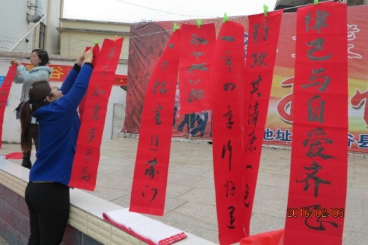 8名書法家及書法愛好者在場揮毫潑墨,一幅幅充滿喜慶、吉祥、祝福、歡樂的春聯隨筆而出。群眾圍觀點贊、精心挑選,志愿者牽紙張、晾春聯,成為廣場上一道亮麗的風景線。活動持續近3個小時,“風清氣正千般好,天朗景明萬象新—國泰民安”“羊筆書廉迎福至,猴王獻瑞報春來—喜氣盈門”等260余副現場書寫的包含著節日祝福、廉政理念的對聯及治家格言警句被紛紛送到現場群眾手中。紅紅的春聯、濃濃的墨香、一句句祝福的話語既弘揚社會新風尚,傳導社會正能量,寄托著對來年生活的憧憬和向往,還送去了黨和政府的關懷和祝福。