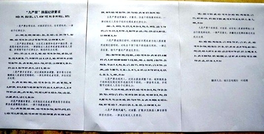 近日,福貢縣立足民族地區實際,為確保換屆紀律要求真正深入群眾、深入人心,人人知曉,切實營造風清氣正的換屆環境。特邀縣內傈僳語“專家”,將中央提出的“九嚴禁”紀律要求全文翻譯成傈僳文,以傈漢雙語的形式,全面進行換屆紀律宣傳。(恒有才)