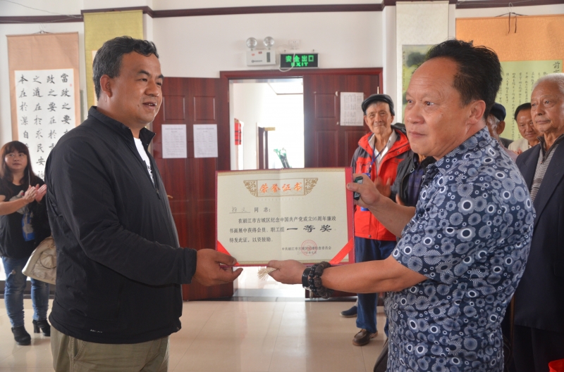 據了解,書畫展除古城區詩書畫協會會員踴躍參展外,麗江市籍國家、省、市書畫協會會員以及玉龍、永勝、華坪、寧蒗四縣書畫協會應邀展出作品。經評審委員會認真選評,共選出作品117件進行展出,書畫展分為特邀組、會員職工組進行評獎,特邀組設一等獎7名、二等獎9名、三等獎15名;會員職工組設一等獎4名、二等獎6名、三等獎17名。書畫作品展出結束后,特邀組獲獎作品及會員職工組一等獎、二等獎作品將在作者自愿的情況下由主辦單位古城區紀委永久收藏。