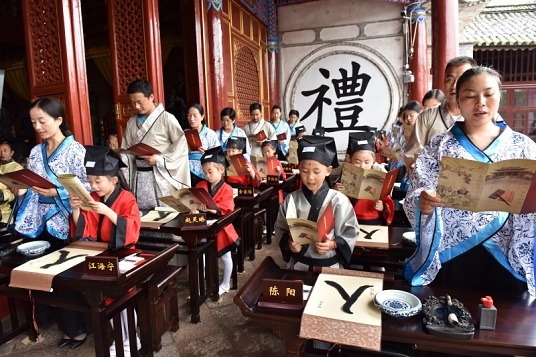 騰沖文廟是全市重要的中國傳統文化教育基地。為使孩子們感受傳統文化,從傳統文化里汲取智慧,開啟美好人生。近日,騰沖市文廣局聯合民間祭孔協會在文廟隆重舉行“開筆禮”儀式,30位即將邁入小學門檻的少兒,在父母的陪同下,來到騰沖文廟參加了儀式。