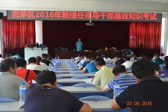 近日,思茅區(qū)紀委組織2015年3月以來新提拔任用的科級實職干部進行廉政知識考試,全區(qū)77名科級實職干部參考。