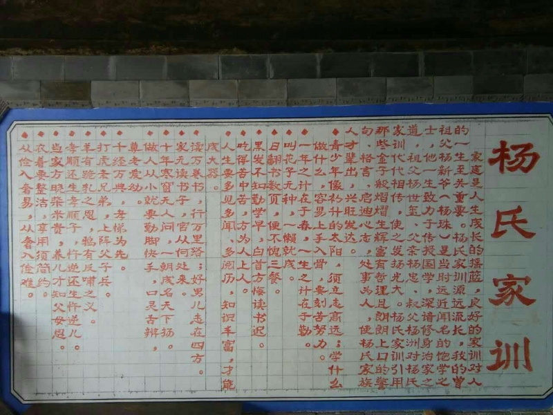 《楊氏家訓(xùn)》注重個人修養(yǎng),旨在于激發(fā)人的主觀能動性,改變世界。家訓(xùn)指出,人首先從小就要樹立遠(yuǎn)大理想,定好遠(yuǎn)大的人走目標(biāo);其次要加強(qiáng)學(xué)習(xí),特別是年輕人,要把握好學(xué)習(xí)的最佳時期,努力提升自己的文化素質(zhì),為實(shí)現(xiàn)理想打好基礎(chǔ);最后強(qiáng)調(diào)人要加強(qiáng)道德修養(yǎng),提倡儉以養(yǎng)德、勤以修身,樹立正確的人生觀、世界觀和價(jià)值觀,健康的體魄是人生最大的財(cái)富是一切的基礎(chǔ)。