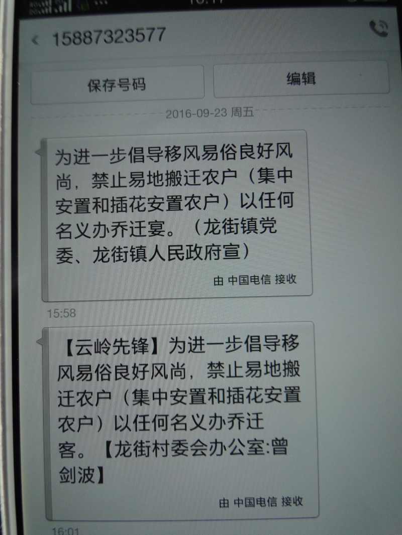 該鎮的紀檢專干介紹,為避免貧困戶因辦客支出、做客送禮成為沉重的經濟負擔,增加貧困深度。龍街鎮大力推進移風易俗,破除陳規陋習,倡導文明新風,樹立勤儉節約風氣。鎮紀委通過綜合服務平發短信、簽訂禁止辦理喬遷客事承諾書等方式,提醒建檔立卡貧困戶從簡喬遷。目前,全鎮建檔立卡貧困戶共簽訂禁止辦理喬遷客事承諾書776份,發送短信1000余條,有力地遏制住了建檔立卡貧困戶辦喬遷新居客事的行為。(羅幫義 陳興福)