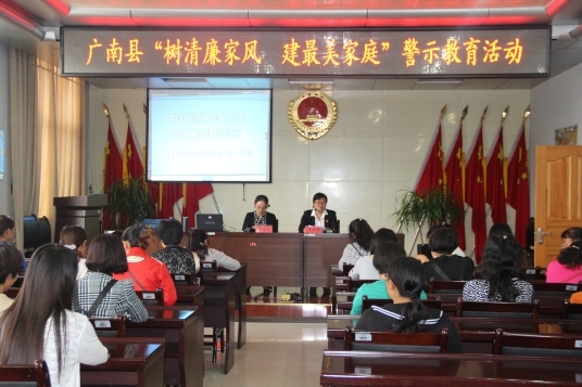 為豐富黨風廉政教育形式,充分發揮家庭在廉政建設中的重要作用,筑牢黨員干部家庭拒腐防變的思想防線。近日,廣南縣婦聯、縣紀委聯合開展了“樹清廉家風 建最美家庭”警示教育活動。縣直12個單位實職科級領導干部家屬及部分婦女干部60余人參加。