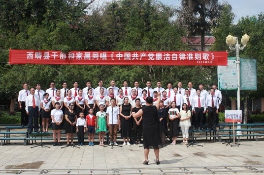 “黨的廉潔自律規范,條條要記清,人人都要把那準則,牢記在心里……”這是不久前,西疇縣紀委監察局在該縣北回廣場上組織干部和家屬同唱《準則歌》的一個場景。