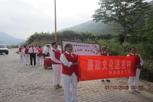 該縣在縣、鄉、村三級舉行“唱準則、學條例、嚴紀律”主題歌詠比賽和“黨員群眾、家庭成員” 同唱《中國共產黨廉潔自律準則》歌活動,在全縣各類大型活動或會議上多次舉行“千人齊唱”《準則歌》活動,同時在全國第27屆敬老節期間,縣紀委組織文藝愛好者開展“弘揚廉政清風,營造敬老氛圍”文藝演出活動,舞蹈《沒有共產黨就沒有新中國》《黨員廉潔自律歌》《誰不說俺家鄉好》,快板《永葆黨旗飄萬代》等一個個充滿正能量的廉政節目紛紛登臺亮相,用群眾喜聞樂見的方式將正氣清風送進千家萬戶,讓群眾在接受黨風廉政宣傳教育中度過了一個歡樂有意義的節日。贏得了陣陣熱烈的掌聲。尤其是小品《好村長》反映一名基層黨員干部時刻牢記為人民服務的宗旨,堅持公私分明,清白做人,干凈做事,帶領群眾奔小康,更是得到現場觀眾的一致好評。