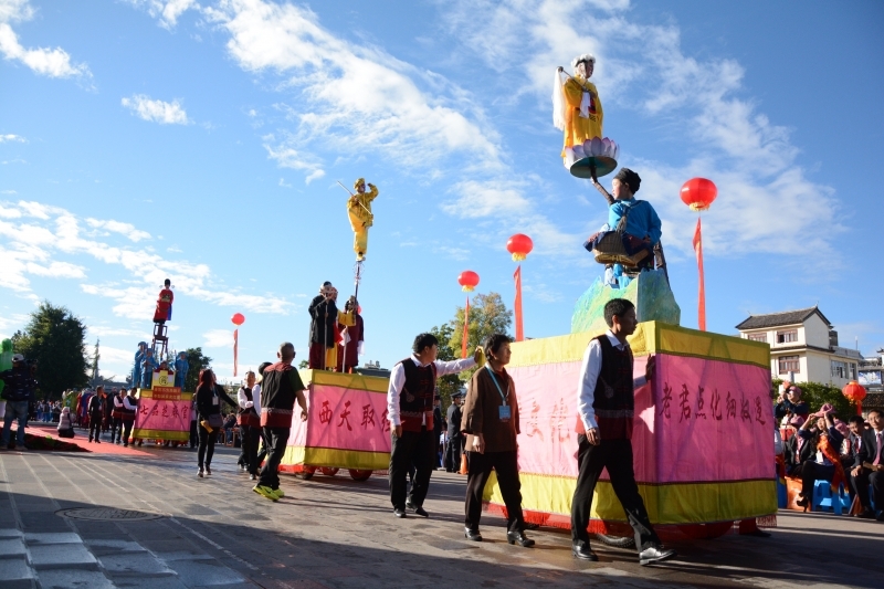 “當(dāng)官不為民做主,不如回家賣紅薯”,11月9日在有著600多年歷史的南詔古街上,一個身穿大紅色古代官府的“七品芝麻官”吸引了廣大群眾的眼球,只見“芝麻官”手里搖著一把折扇,紙扇赫然寫著“清風(fēng)徐來”四個大字。這是巍山彝族回族自治縣成立60周年縣慶活動中省級非物質(zhì)文化遺產(chǎn)項目“高臺社火”展演的一個鏡頭。