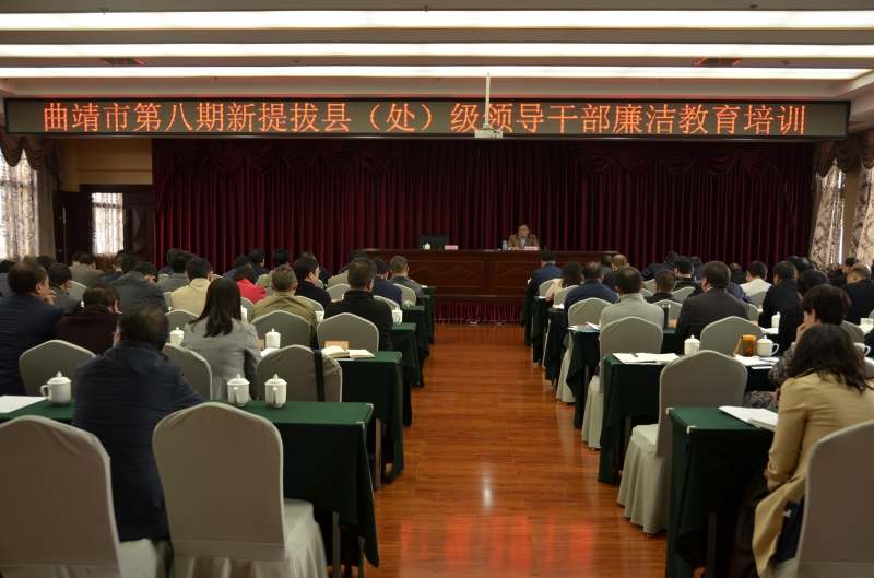 11月15曰,曲靖市舉辦第八期新提拔縣(處)級領導干部廉潔教育培訓班,對2014年10月至2016年10月新提拔的縣(處)級領導干部進行廉潔教育培訓。培訓邀請了省紀委法規室主任作專題輔導。