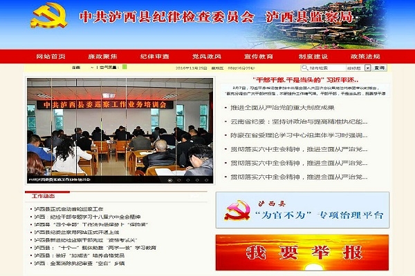 為突出紀檢監察機關特色,網站開設了“為官不為”專項治理平臺、網上舉報、曝光臺等專蘭。其中, “為官不為”專項治理平臺,充分發揮了群眾對干部不作為、慢作為、亂作為問題的監督作用?!熬W上舉報”專欄為廣大瀘西群眾第一時間舉報不正之風和腐敗問題開辟了一條“綠色通道”?!捌毓馀_”發布各地查處的違反中央八項規定精神、發生在群眾身邊的腐敗問題和不正之風的典型案例,充分發揮以案警示的作用。