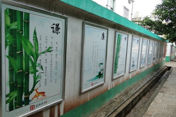 為了讓學生在濃郁的廉潔文化氛圍受到陶冶和熏陶,學校文化長廊里開辟了師生廉潔作品專欄,教室墻壁上懸掛了著名科學家、學者、廉官的畫像,整個校園里處處洋溢著廉潔文化氣息。
