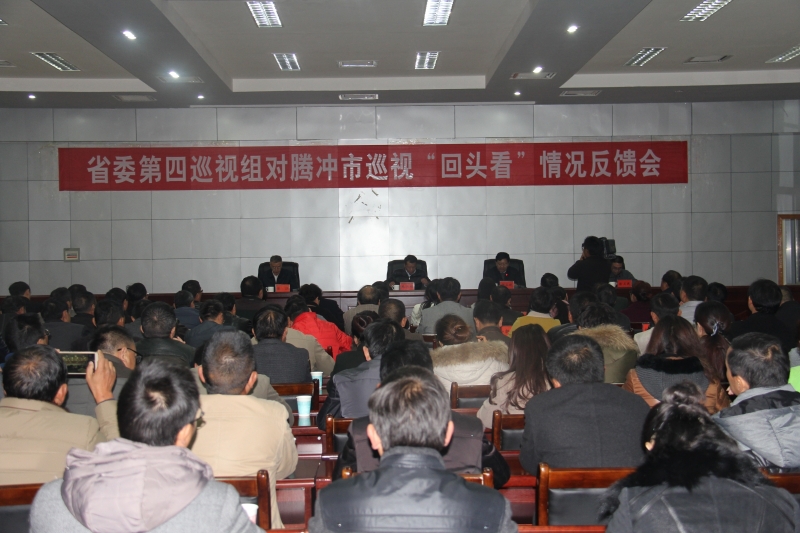 12月15日,省委第四巡視組到騰沖市反饋巡視“回頭看”情況。省委第四巡視組組長王興明代表巡視組作了情況反饋,騰沖市委書記主持會議并作表態發言。