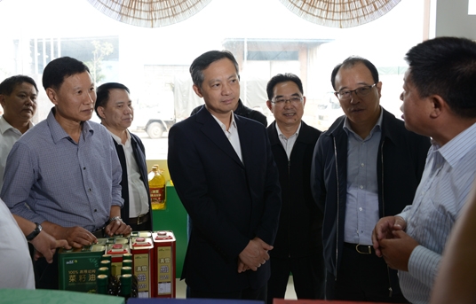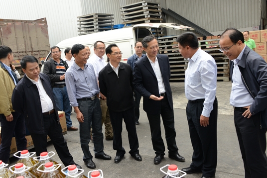 在油脂中試、預(yù)榨車間和成品油灌裝車間,張碩輔仔細查看產(chǎn)品生產(chǎn)線,詳細了解生產(chǎn)運行情況。