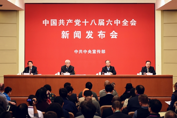 非常高興出席今天的新聞發布會。大家知道,昨天,中共十八屆六中全會圓滿完成了各項議程,勝利閉幕。應該說,這次全會的主題十分重大、內容非常充實、成果十分豐碩,對我們黨、對我們國家的意義是重大而深遠的。