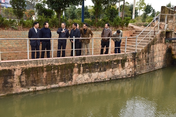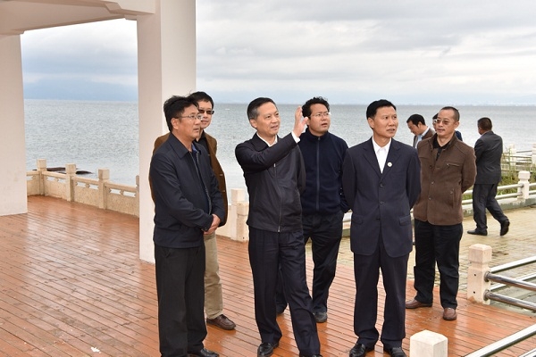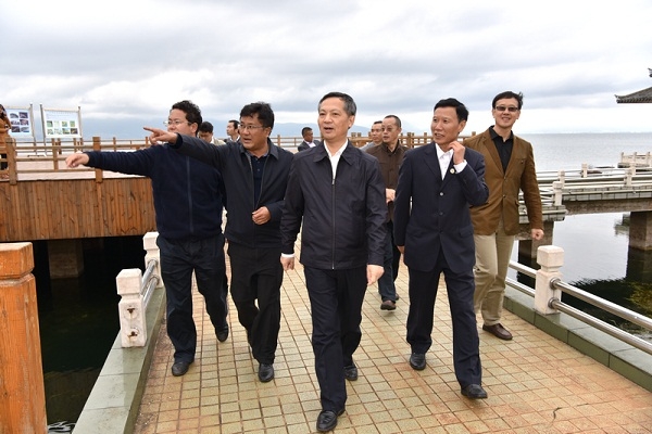 張碩輔一行來到澄江縣海口鎮,對海口公園、撫仙湖出水口、海口集鎮等地進行現場調研,并聽取澄江縣和海口鎮經濟社會發展情況匯報。