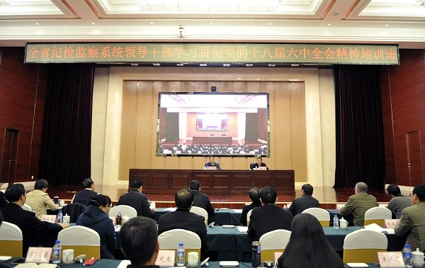 培訓班圍繞學習貫徹黨的十八屆六中全會精神,開設了進一步增強“核心意識”、作風建設、巡視巡察、依紀依規(guī)治黨、廉潔文化建設、實踐監(jiān)督執(zhí)紀“四種形態(tài)”等若干專題,分5期對省紀委省監(jiān)察廳機關、省委巡視機構(gòu)、省紀委派駐(出)機構(gòu)全體干部和各州(市)紀委監(jiān)察局班子成員、各縣(市、區(qū))紀委書記進行“全覆蓋”培訓。