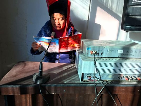 大興鎮(zhèn)牛洪村委會副總支書記用哈尼語通過“村村響”播講《準則》和《條例》