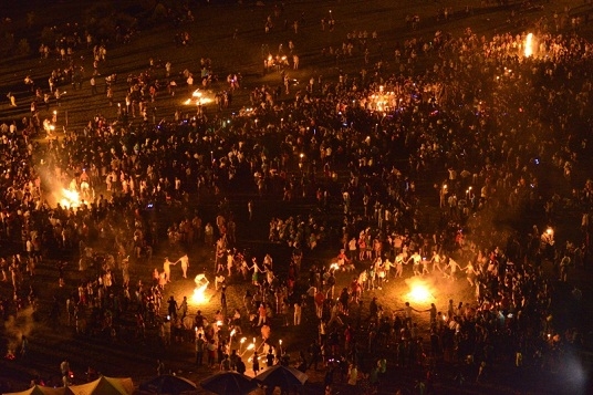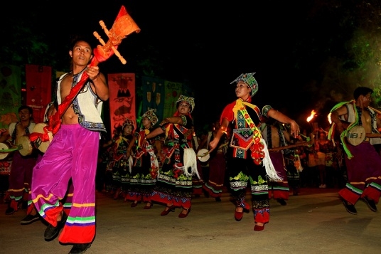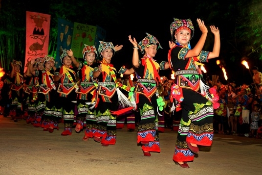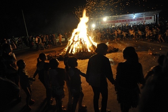 7月24日,農歷六月二十四,是文山州彝族的傳統節日——火把節。節日期間,州內各族群眾從四面八方趕來,歡聚一堂,通宵達亙,載歌載舞,大家圍著熊熊篝火,手拉手,在彝族歌曲的旋律中跳起歡快的弦子舞,弦子錚錚,歌聲陣陣,舞姿盈盈,場面盛大而熱烈,火紅的節日,演繹激情、快樂和幸福,傳遞著各族人民和睦相處、安定團結的心聲。