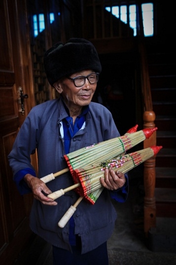 幾十年前,滎陽村每一戶人家都會做油紙傘,但是隨著老人們相繼離世,現(xiàn)在全村僅有4戶人家還在制作油紙傘。今年89歲的鄭映海老人就是其中的一位非遺傳承人。