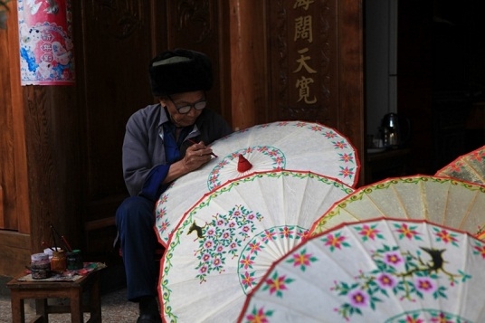 保山市騰沖市固東鎮(zhèn)的滎陽村,離云南省騰沖市城區(qū)50多公里,是一個山清水秀的小村子,這個小村子以出產(chǎn)精美獨特的油紙傘聞名。滎陽村過去曾有一片沼澤地,長年生長著許多蘆葦和毛竹,世居在這里的村民就利用蘆葦和毛竹編制紙傘、藤編、竹編等生產(chǎn)、生活用品,并到集市上出售。
