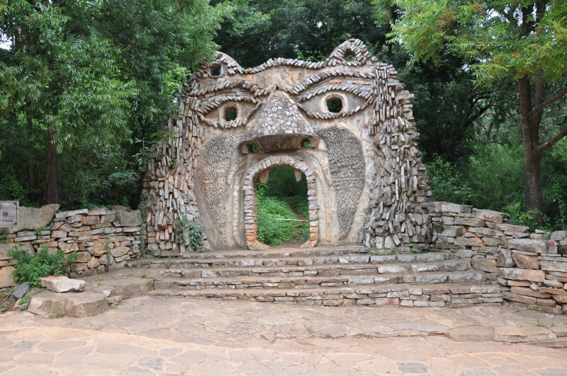 石頭砌成的密枝林大門,撒尼人祭祀的圣地
