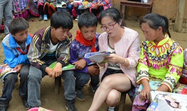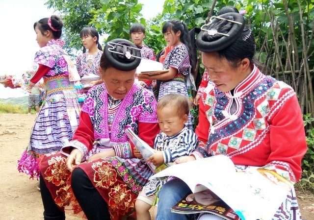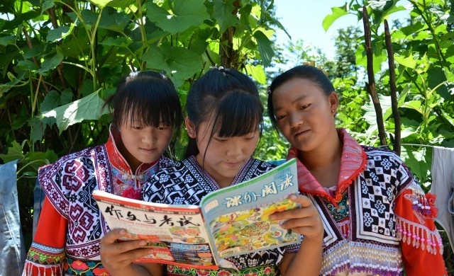 “小朋友們,快過來看課外書,這些書都是送給你們的?!贝箨P縣圖書館館長常紹慧招呼著孩子們??粗@些浸滿汗水的書籍,身著苗族服飾的孩子們便尋找著自己喜愛的圖書,三五成群、專注地閱讀起來,看到動情處不時吆喝一下旁邊的伙伴,那高興勁兒已經寫在了他們掛滿笑容的臉上。工作隊員們不時引導孩子們學習,其樂融融的場景在此地成了難得一見的“風景”。