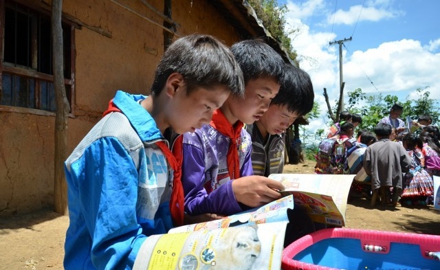 “在寨子里從來沒有看到過課外書,平時看書都是從學校的圖書館借。寒暑假基本沒有課外讀物,這下好了,有了這么多課外書,這個假期肯定會過得特別難忘。”六年級的張春旭高興地說。讀二年級的王建花捧著《少兒百科全書》,很激動:“一直就很想讀這本書,可是爸媽沒錢買,今天終于看到了!”7月24日,昭通市大關縣第二個“背篼圖書館”在悅樂鎮寨子村海壩村民小組建立時的場景。