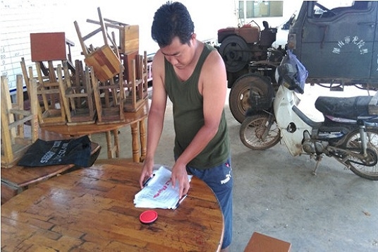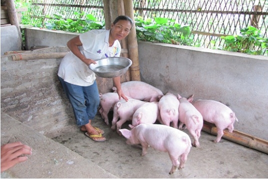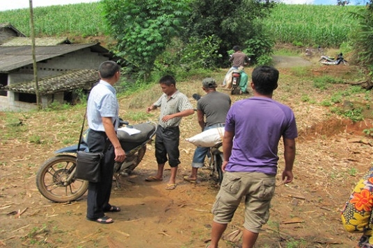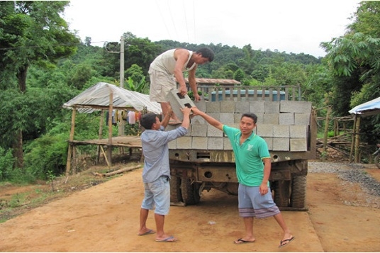 村民領取建蓋豬圈的材料