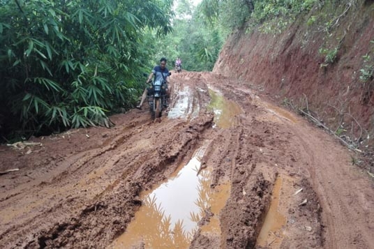 太陽還沒出山,駐村工作隊員們都已起來,準(zhǔn)備到八落村最遠(yuǎn)的兩個村民小組的貧困戶家中進(jìn)行走訪。隊員們分成兩個小組,一個小組去上很乃村民小組,另一個小組去下很乃村民小組。由于自然條件惡劣,村民居住分散,基礎(chǔ)設(shè)施建設(shè)滯后,目前村民最急需解決的問題,就是道路交通和人畜飲水的問題。全村18個村民小組都修建了村組路,全長48公里,但只有2個村民小組三岔河和回頭山組進(jìn)組道路路面硬化,其他16個村民小組進(jìn)組路面為土路,村民們至今還生活在“晴天一身灰,雨天一身泥”的生活環(huán)境中,嚴(yán)重影響了群眾出行和當(dāng)?shù)厣a(chǎn)資料運(yùn)輸及農(nóng)產(chǎn)品外銷問題。