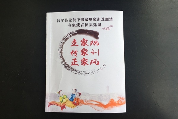 “千里之堤、毀于蟻穴,錦繡前程、毀于一念”、“ ‘貪’字近乎‘貧’,‘婪’字近乎‘焚’”的家規家訓;“陶母退魚”、“孔融讓梨”的中華小故事;“寧走百里遠,不存一念私”的廉潔箴言……都被收錄在《昌寧縣黨員干部家規家訓及廉潔齊家箴言選編》當中。昌寧縣積極開展“好家風好家訓、廉潔齊家箴言”征集活動,共征集到廉潔齊家箴言600余條匯編成冊。同時,圍繞家規家訓家風這條主線,全面梳理挖掘歷史和當代的優秀家規家訓資源,將家風建設引入廉政教育之中,真正讓“家風正則行得正,家風淳則風氣淳”的廉潔之花開遍昌寧。