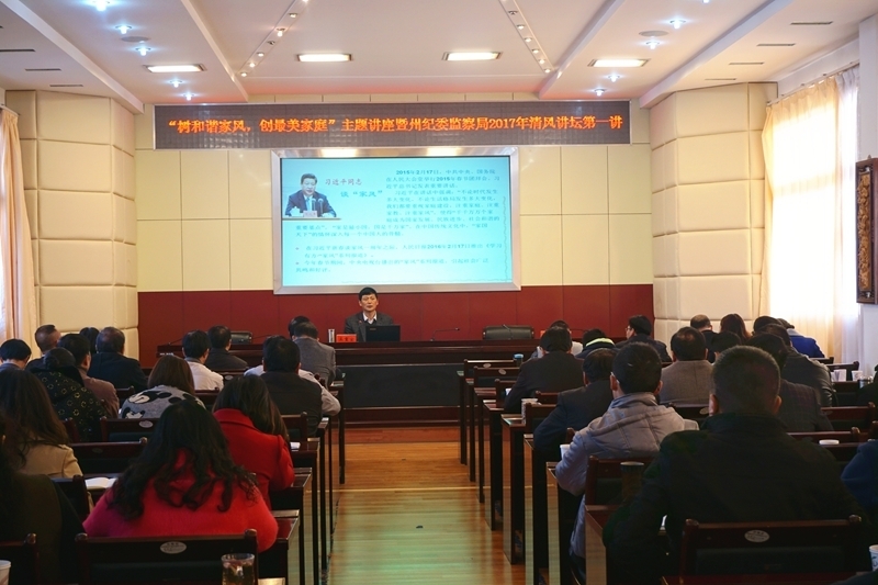 3月6日,大理州紀(jì)委監(jiān)察局舉辦“樹和諧家風(fēng),創(chuàng)最美家庭”主題講座暨2017年“清風(fēng)講壇”第一講,邀請大理大學(xué)心理學(xué)副教授、民進(jìn)大理大學(xué)支部主任奚重宣對“和諧家風(fēng)、最美家庭”進(jìn)行了專題講授。州紀(jì)委監(jiān)察局全體干部職工參加專題講座。