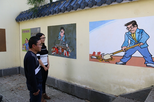 鄉(xiāng)政府墻壁涂寫的廉政漫畫