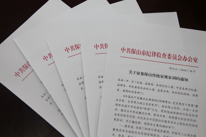 為進一步弘揚保山“本土”優秀傳統文化,更好地弘揚良好家風,傳承良好家規家訓,用身邊事教育身邊人,近日,保山市紀委印發《關于征集保山傳統家規家訓的通知》,在全市開展具有本土特色的傳統家規家訓征集活動。