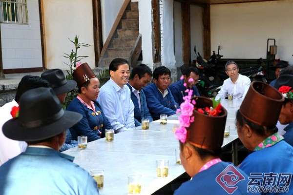 深秋隴川,層林盡染;田疇織錦,一派豐收景色。伴隨著水稻收割機的轟鳴,沁人心脾的稻香彌漫在空中。陳豪率調研組一行來到戶撒鄉戶早村來細村民小組察看脫貧情況,村里干部群眾喜氣洋洋地圍坐在康團翁家院里,紛紛講述自省煙草公司幫扶阿昌族以來,自己生產生活所發生的巨變,危舊房屋整治一新,坎坷土路硬化平整,人均收入連翻幾倍。因為貧窮,昔日兒郎娶親難,今日酒甜歌美結連理。陳豪望著笑容滿面的民族群眾,高興地說,在以習近平同志為核心的黨中央堅強領導下,中華民族千百年來存在的絕對貧困問題將在我們這一代人手里得到歷史性地解決,這是云南各族人民世世代代的夢想。我們要進一步補短板、強基礎、固成果,倡導勤勞致富,搞好環境整治,鼓足干勁、充滿信心把戶撒鄉打造成中國知名的美麗鄉村。