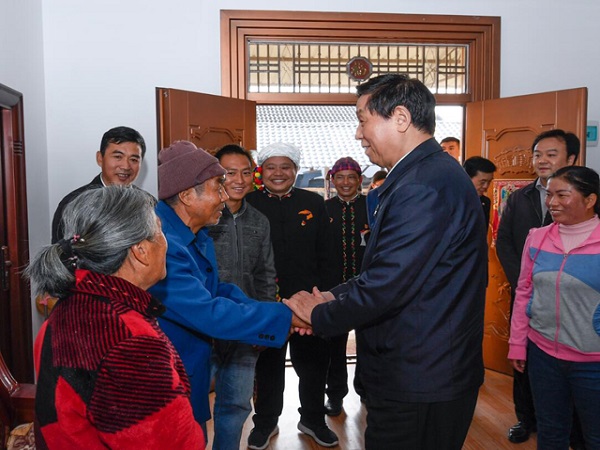 11月28日至12月1日,中共中央政治局常委、全國人大常委會委員長栗戰書在云南就制定基本醫療衛生與健康促進法開展立法調研。這是11月30日,栗戰書在云南省德宏傣族景頗族自治州瑞麗市戶育鄉戶育村,走進村民家中嘮家常、問收入、聊致富。申宏 攝
