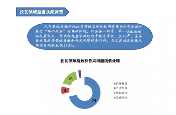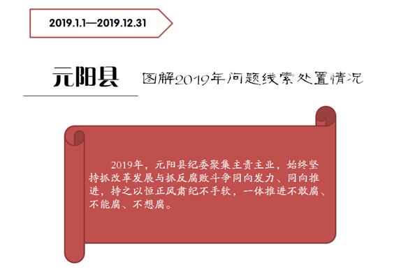 2019年,元陽縣紀委監委聚焦主業主責,全面履行監督執紀問責和監督調查處置職能,持續保持正風肅紀反腐高壓態勢,全年共處置問題線索121件,運用“四種形態”處置人員190人次。