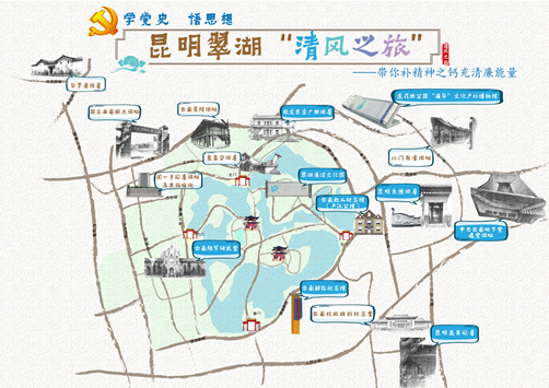 黨史學習教育開展以來,該區紀委監委堅持集中學習和自主學習相結合,規定動作和自選動作同發力,充分發揮轄區紅色資源稟賦優勢,通過整合資源、創新形式、豐富載體等方式,將黨史學習教育廉政教育貫通融合,創新打造昆明翠湖“清風之旅”學習教育路線。