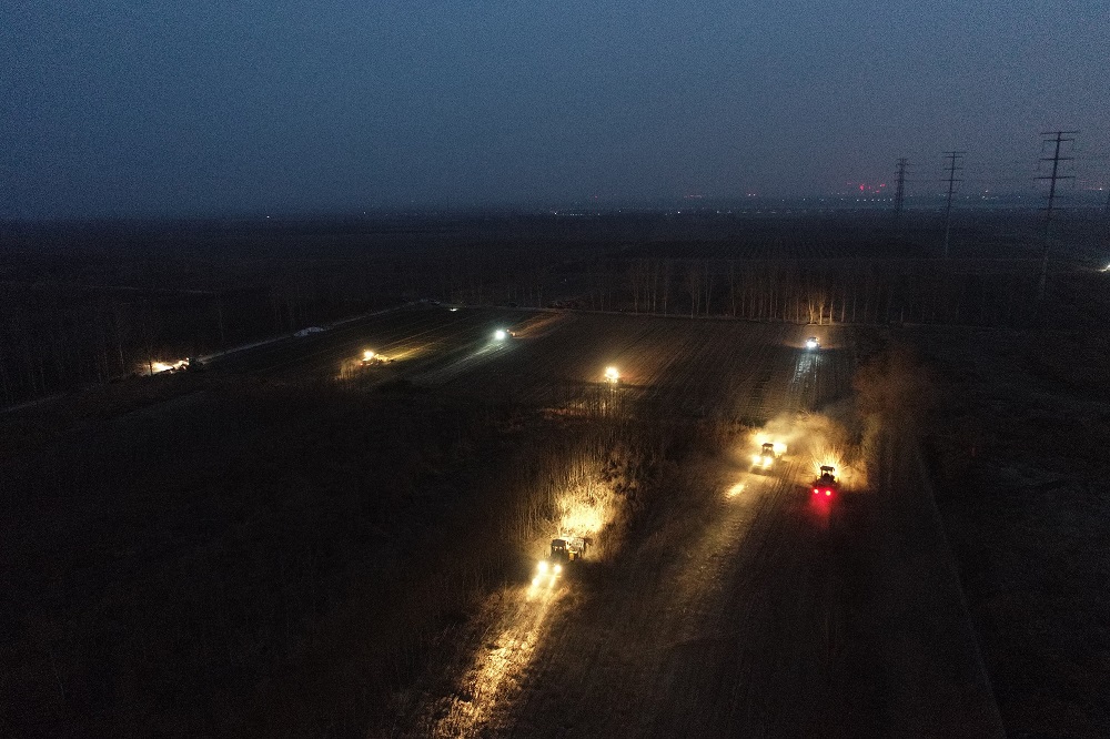 中鐵十四局集團、中鐵十二局集團兩家單位共投入近100臺各類機械、600多名員工,采取24小時輪流作業的方式進行不間斷施工。當晚,當地最低氣溫達到零下4攝氏度,建設者們冒著嚴寒完成了現場的清表工作。圖為1月13日夜間,中鐵十四局集團工人連夜在現場作業(無人機照片)。(何忠正 攝)