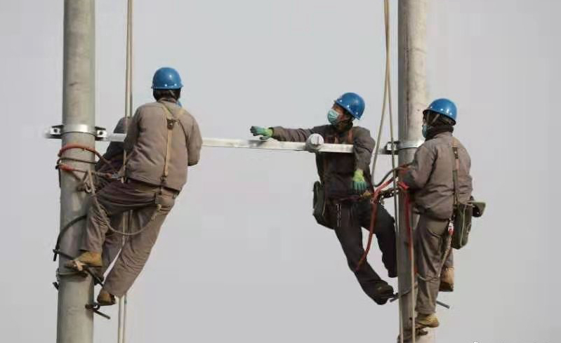 目前,石家莊市集中隔離點正在火速接電中,預計15日中午全部通電。集中隔離點總用電容量約12000千伏安,采用雙電源方式供電,工程新建電纜長度12公里、架空線路2公里,新設柱上變壓器36臺,新建水泥桿基礎119基。圖為國網石家莊供電公司施工隊伍正在現場實施線路架設作業。(來源:電網頭條微博)