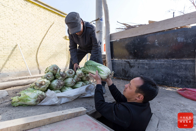 臨近春節(jié),新疆維吾爾自治區(qū)庫車市各級黨員干部沖鋒在一線,幫助群眾解決冬季生產(chǎn)生活困難和訴求,做好冬季疫情防控。圖為2020年12月17日,黨員干部在幫助獨居老人儲備過冬蔬菜。(新疆維吾爾自治區(qū)庫車市紀(jì)委監(jiān)委供 袁歡歡 攝)