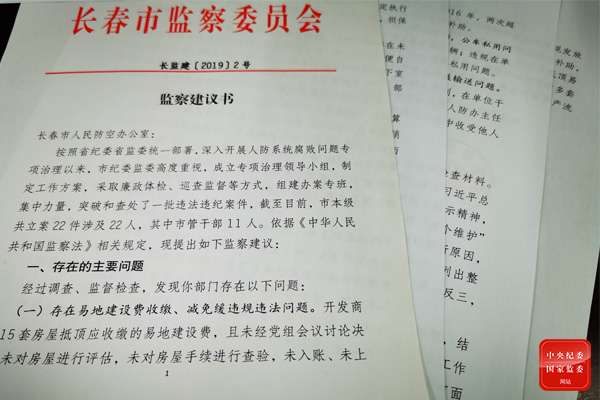 圖為吉林省長春市監委向市人防辦發出的監察建議書